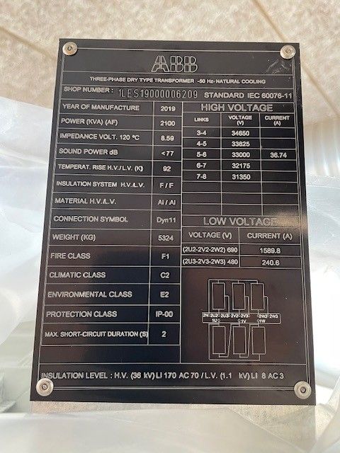 Artykuł TRAFO 2100kVA 50Hz ¤ 33KV