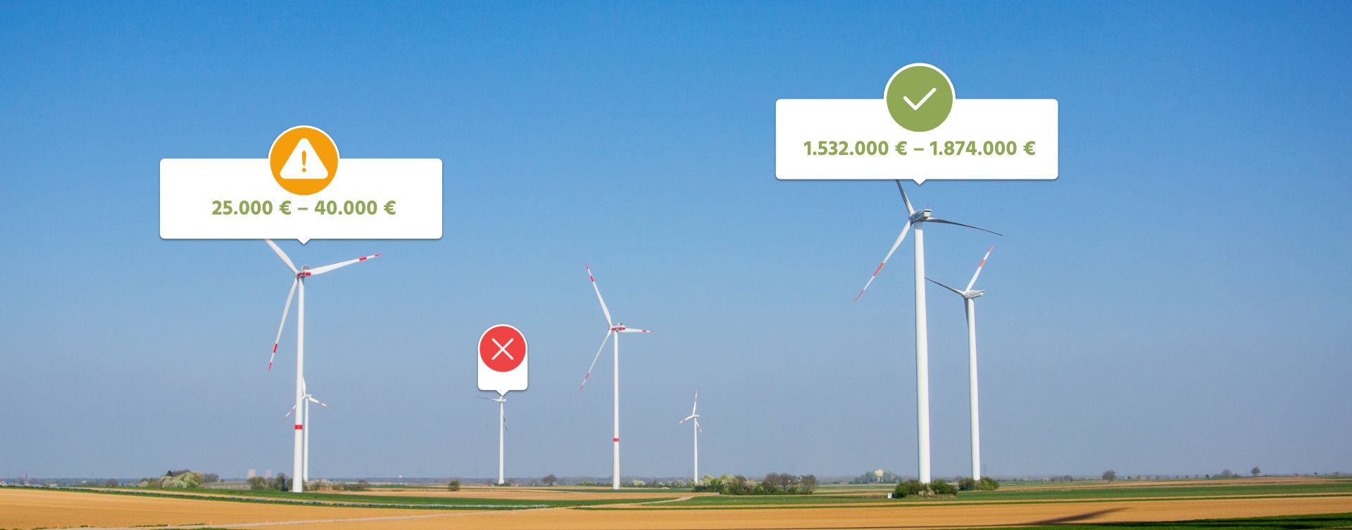Operatorzy i operatorzy mogą bezpłatnie określić aktualną wartość rynkową swoich turbin wiatrowych lub farm wiatrowych. Ocena jest przeprowadzana: